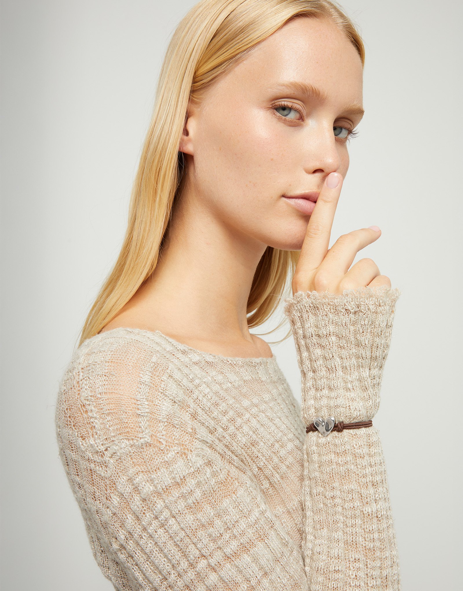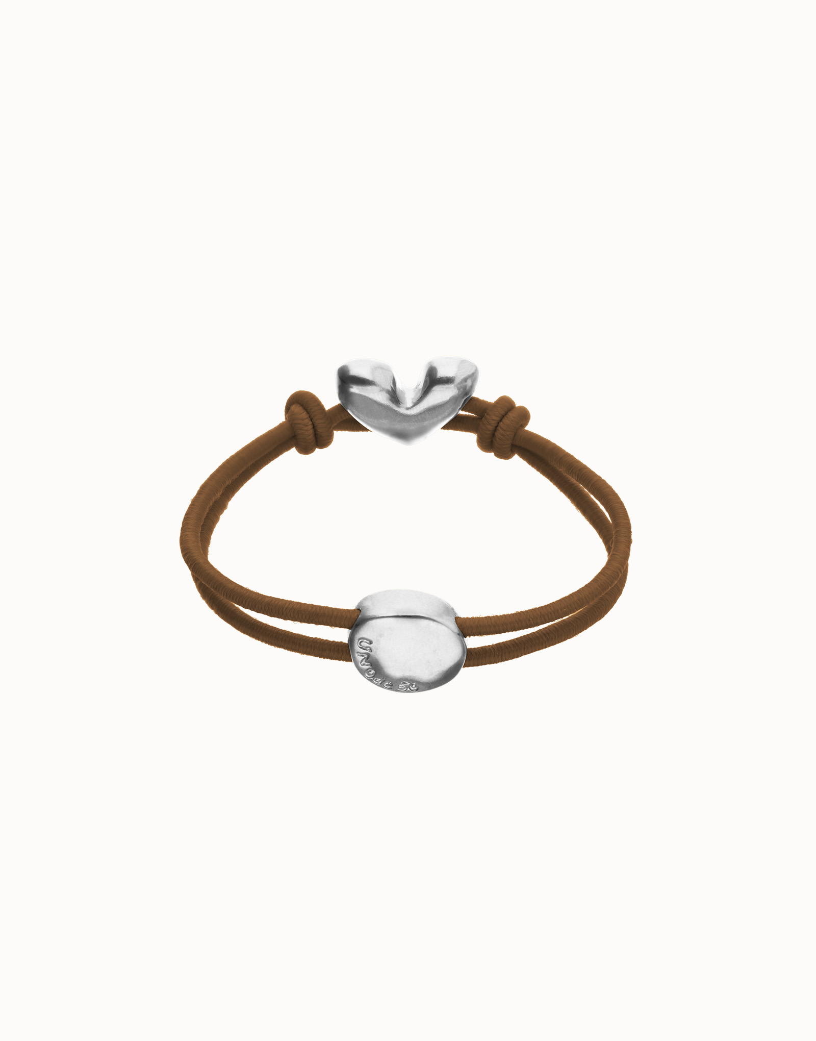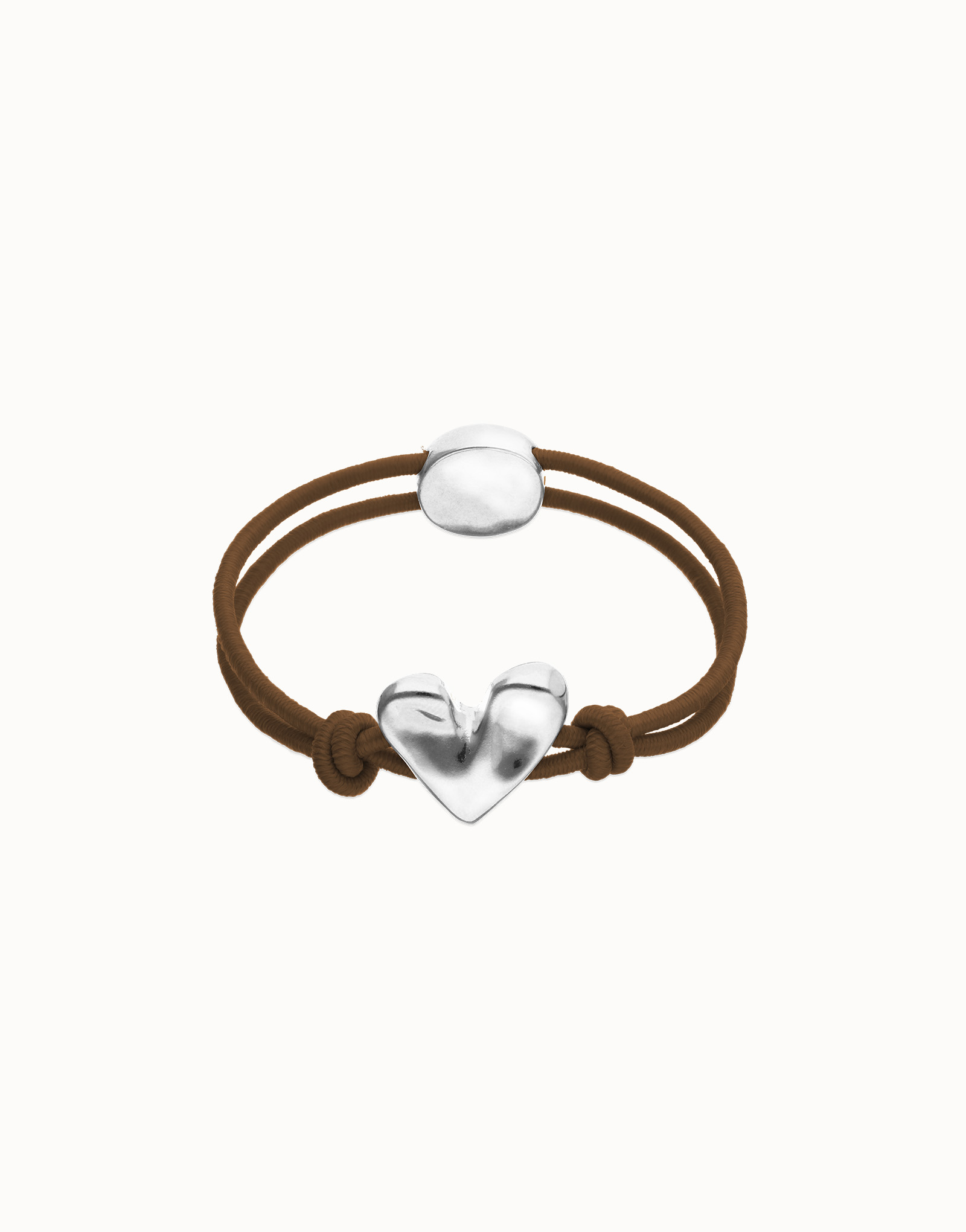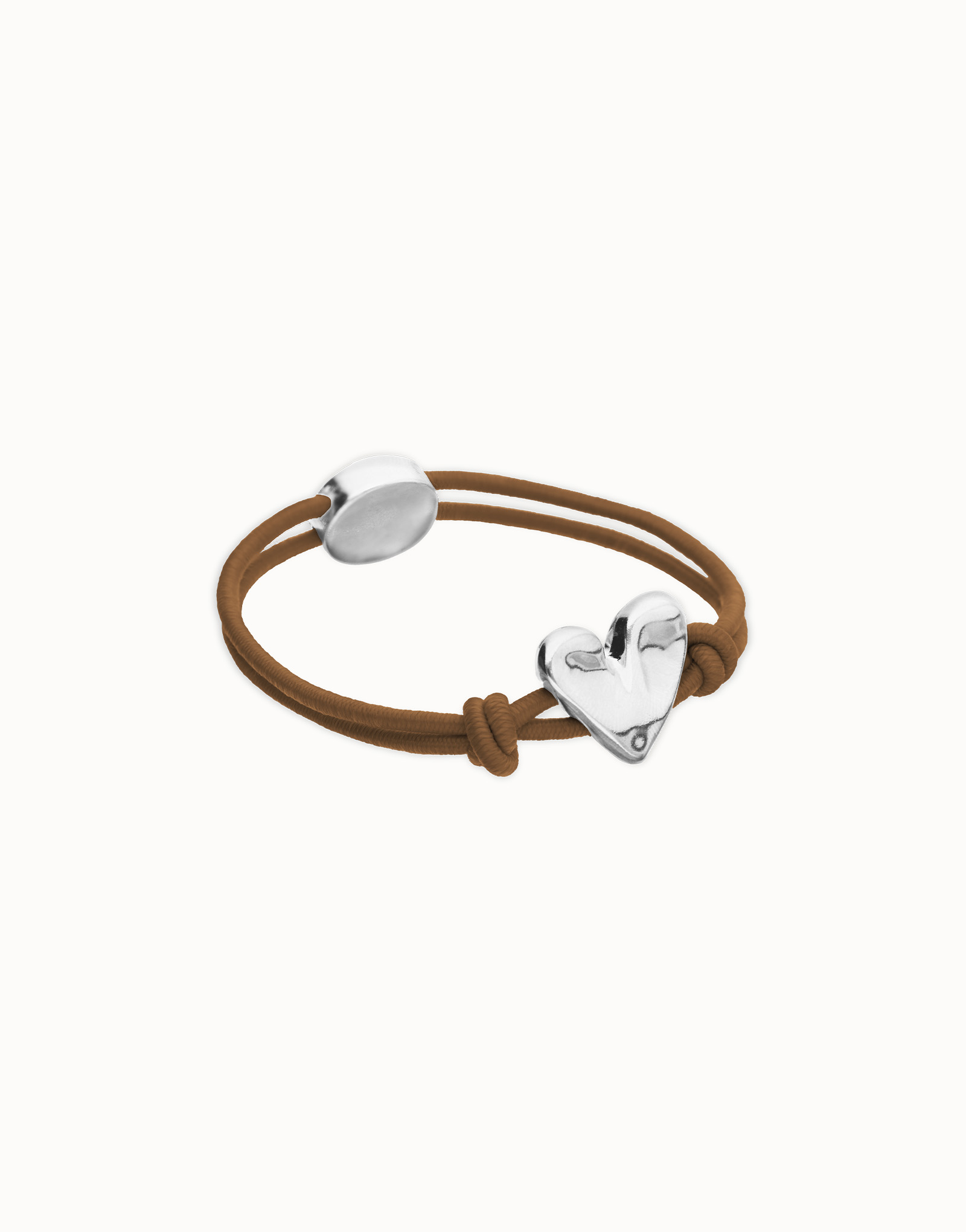Brown elastic thread bracelet with heart .When something inside you beats strongly, there is only one way to listen to it: let go. The Beat Collection is a celebration of letting go of the reins and letting your heart lead the way. A handmade heart, imperfect, but real. Because the result of living this way is a heart sculpted with your own hands.