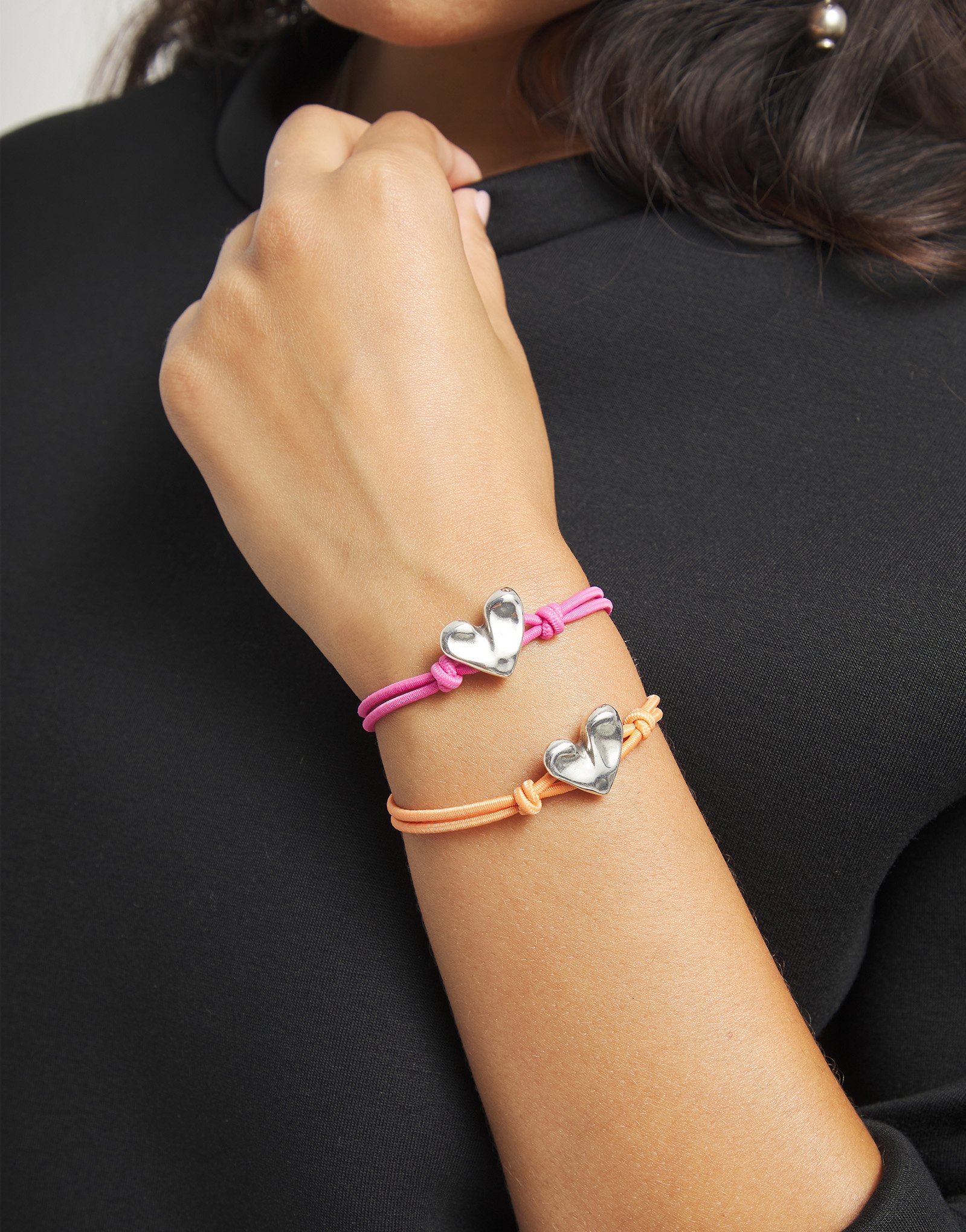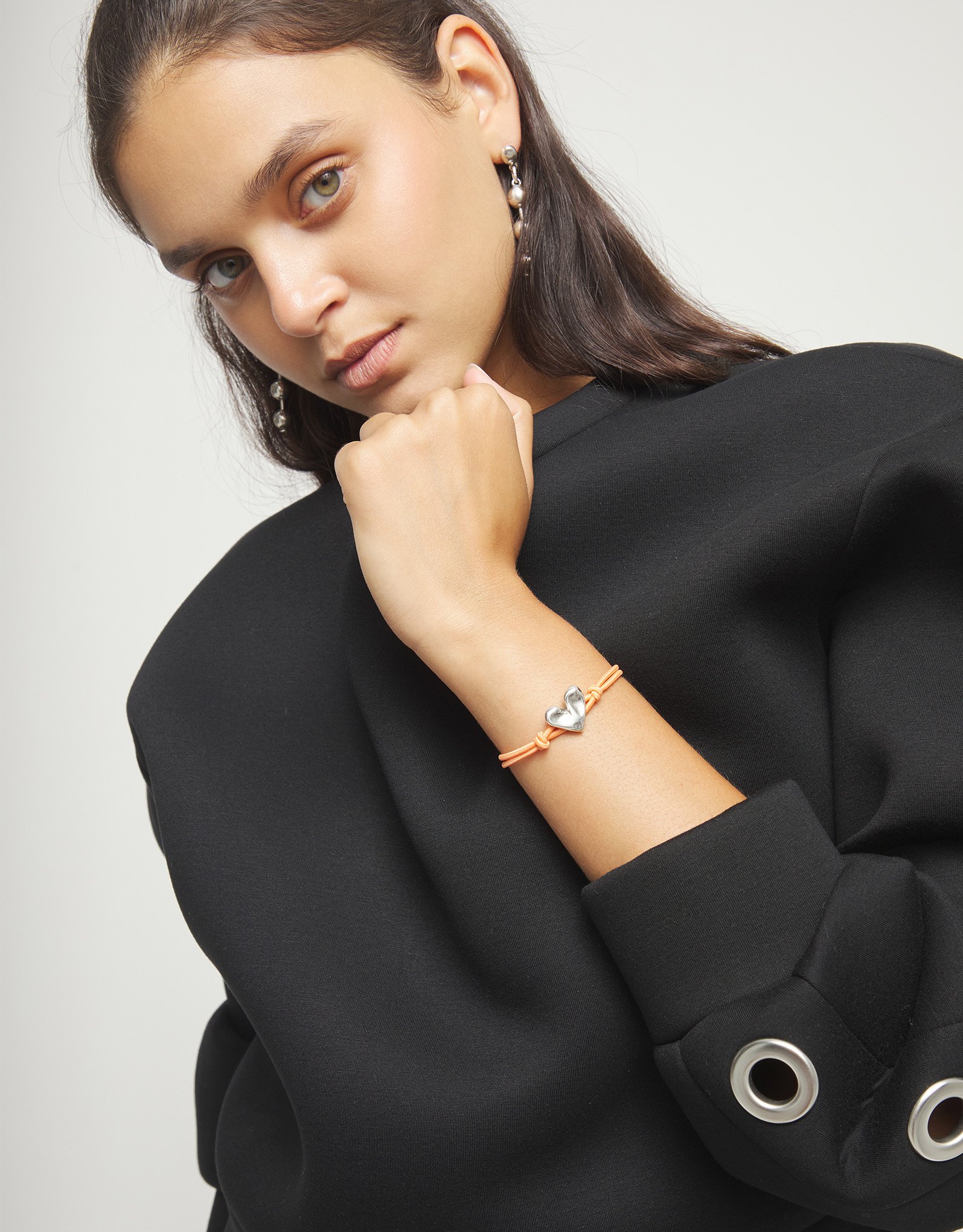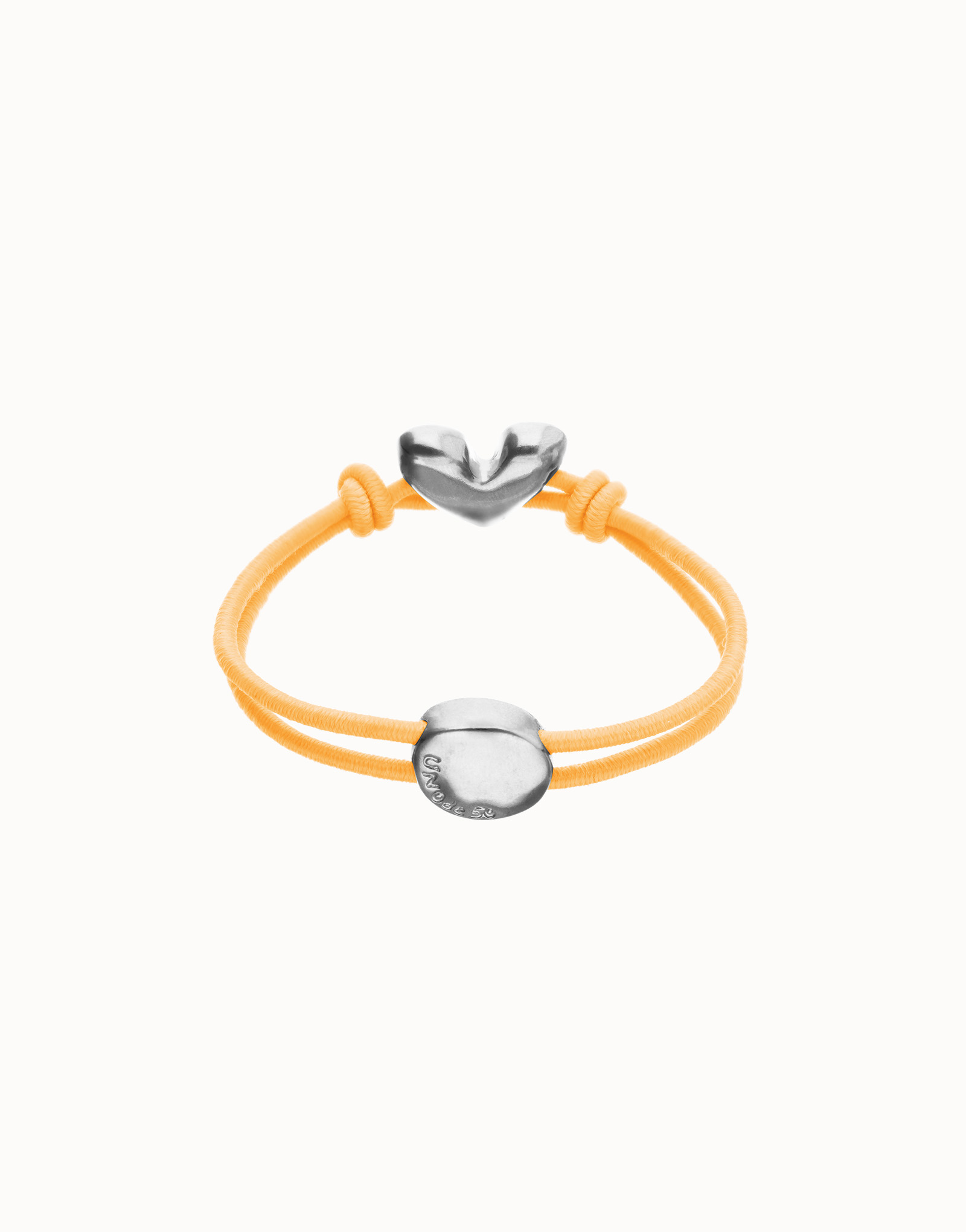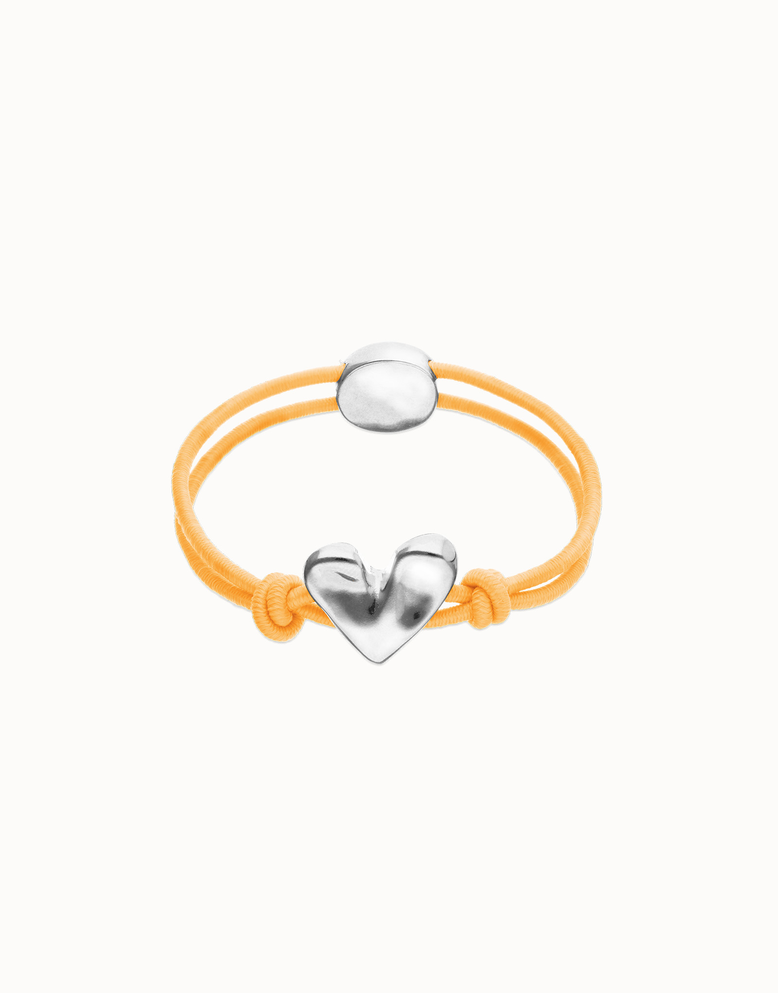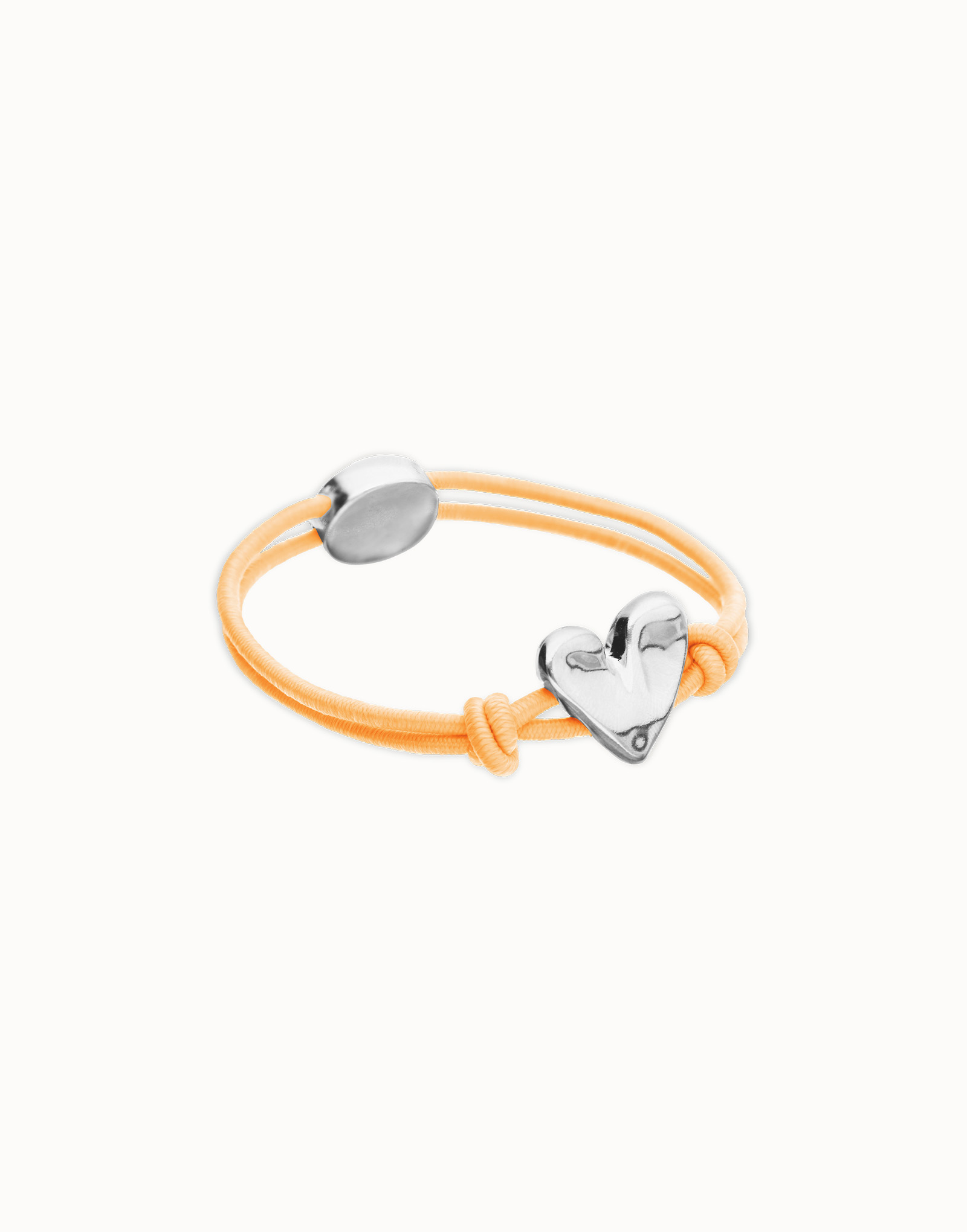 Orange elastic thread bracelet with heart.When something inside you beats strongly, there is only one way to listen to it: let go. The Beat Collection is a celebration of letting go of the reins and letting your heart lead the way. A handmade heart, imperfect, but real. Because the result of living this way is a heart sculpted with your own hands.