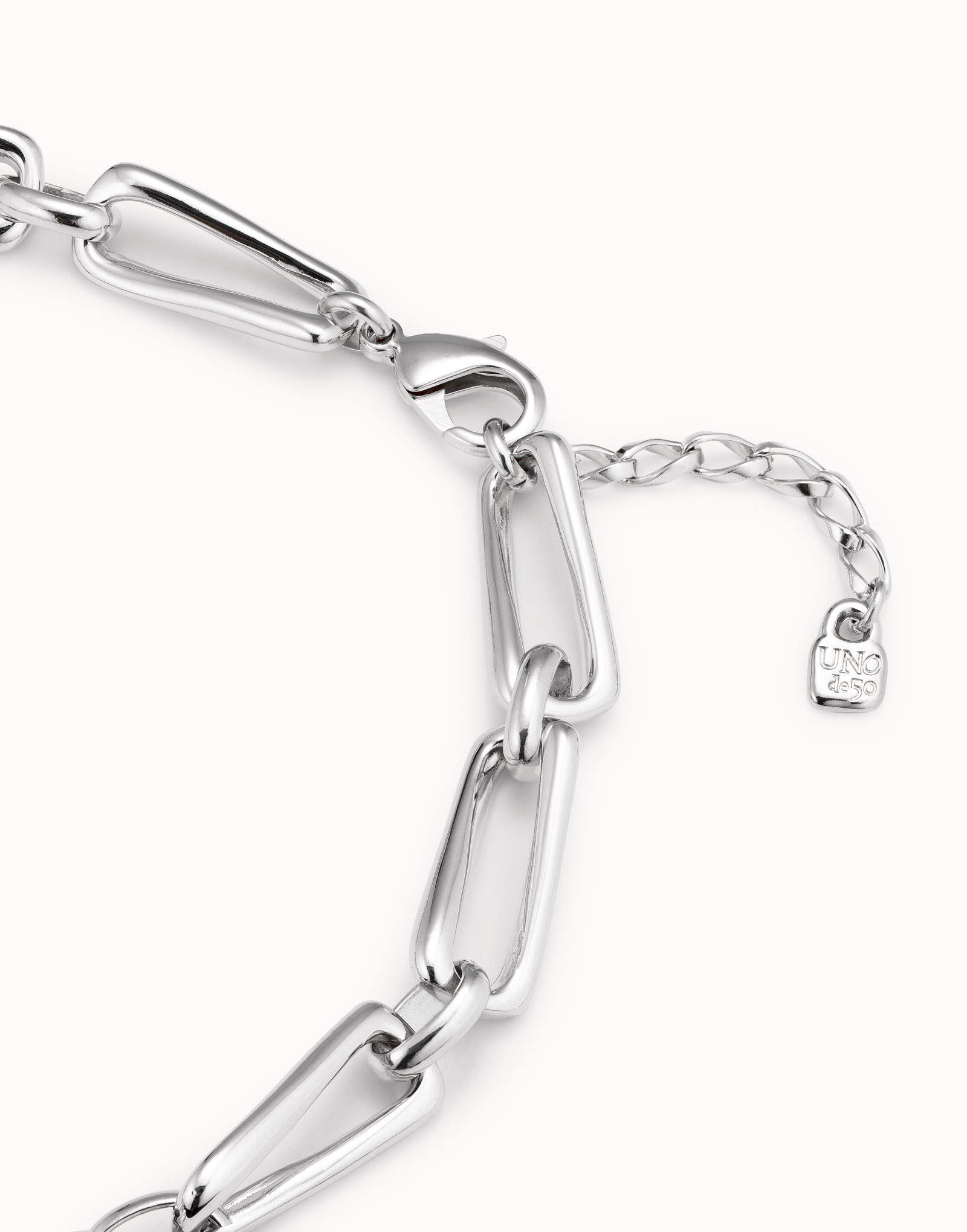El collar galaxy cuenta con un diseño de eslabones cuadrados de metal bañado en plata. Su cierre de mosquetón permite regular la pieza a la medida deseada y su peso es de 87,5 gr. Consigue esta joya hecha a mano en España y combínala con el resto de piezas de la colección para convertirte en el centro de todas las miradas.