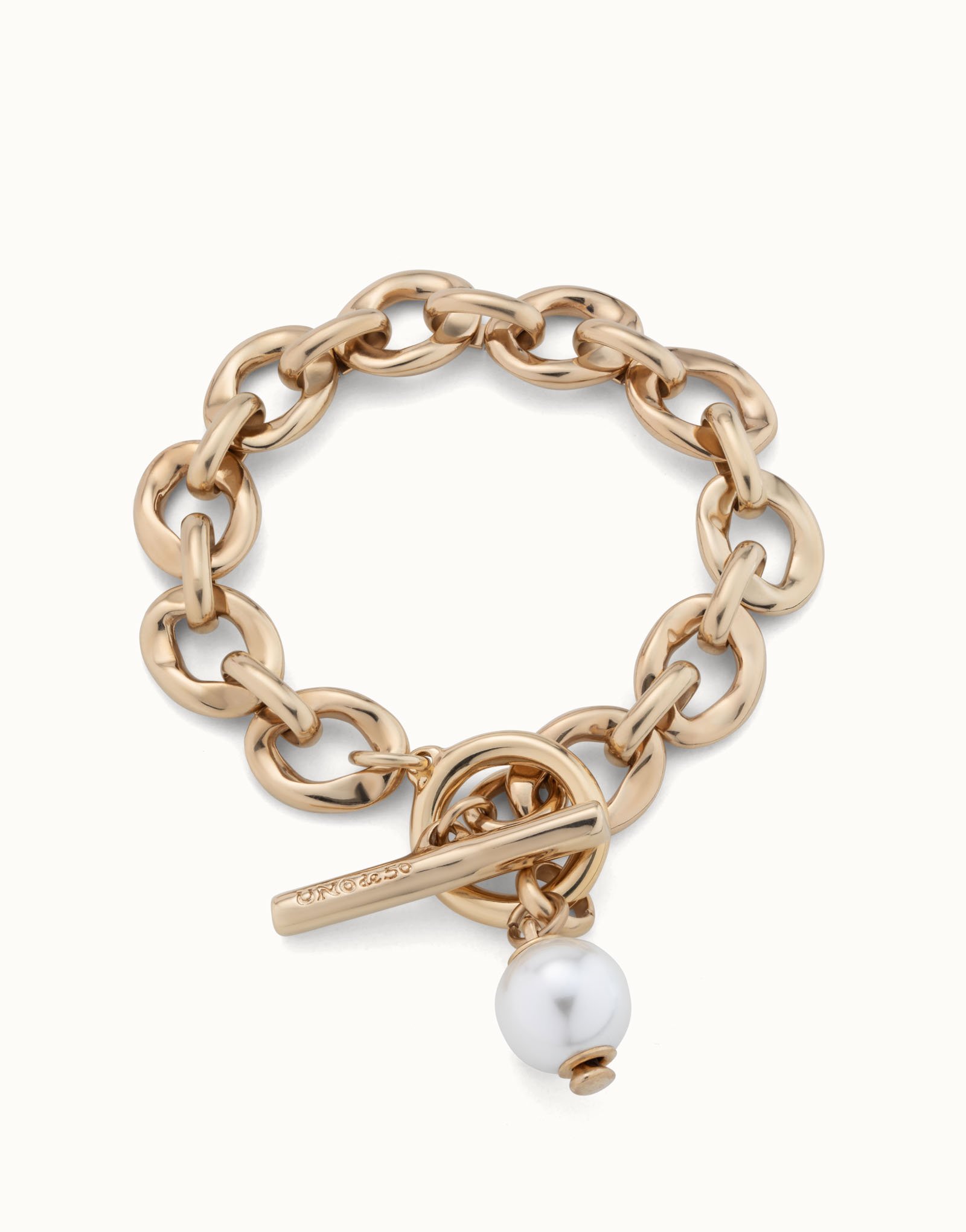 Pulsera bañada en oro 18k con eslabones y charm de perla