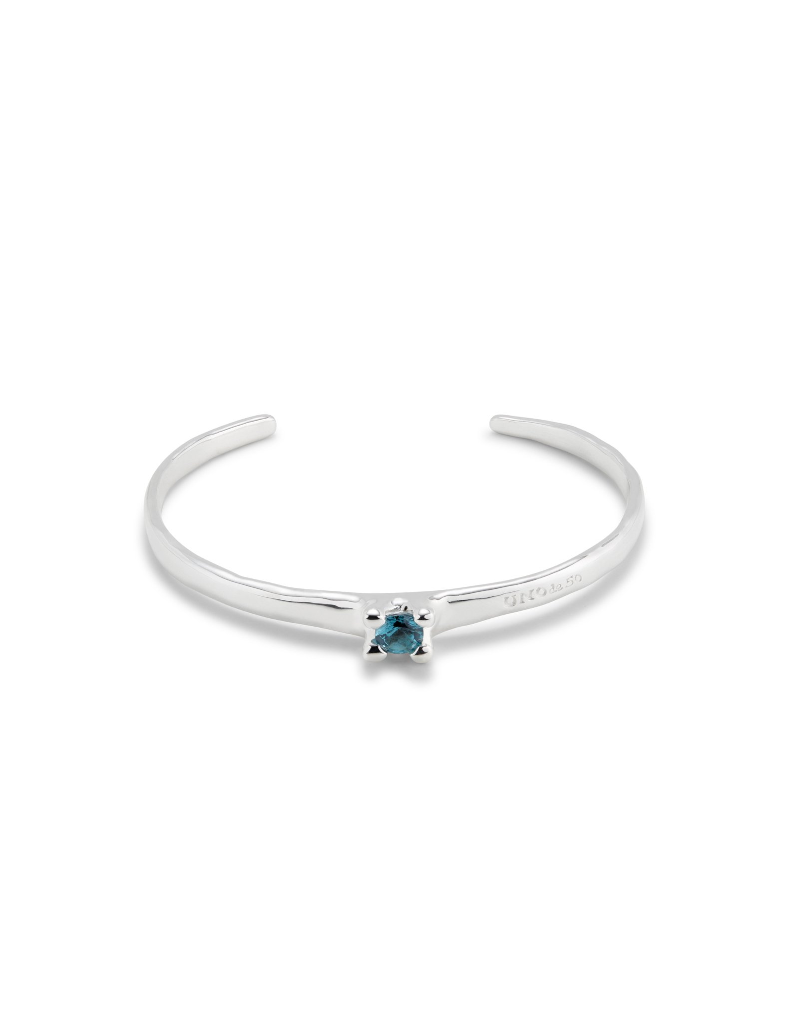 Bracelet rigide plaqué argent et zircon bleu. Bijoux Made in Spain, selon un procédé 100 % artisanal, ce qui permet d'obtenir une finition unique.