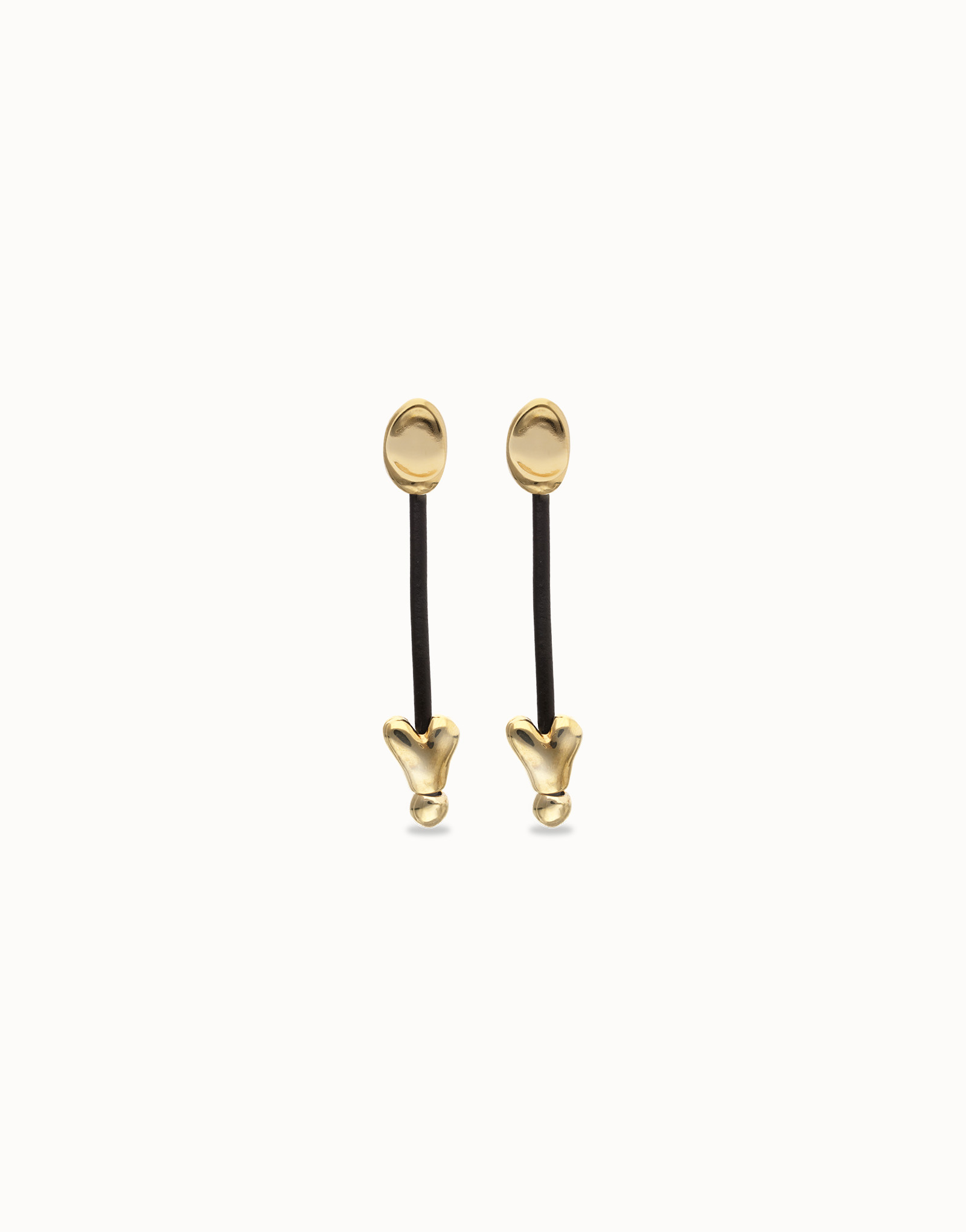 Boucles d’oreilles longues avec cuir et cœurs plaqués or 18k.Quand quelque chose bat fort en toi, il n’y a qu’une façon de l’écouter : te laisser porter. La collection Pálpito célèbre le lâcher-prise et le fait de laisser ton cœur montrer la voie. Un cœur fait main, imparfait, mais vrai. Parce que vivre comme ça, c’est finir avec un cœur sculpté de tes propres mains.
